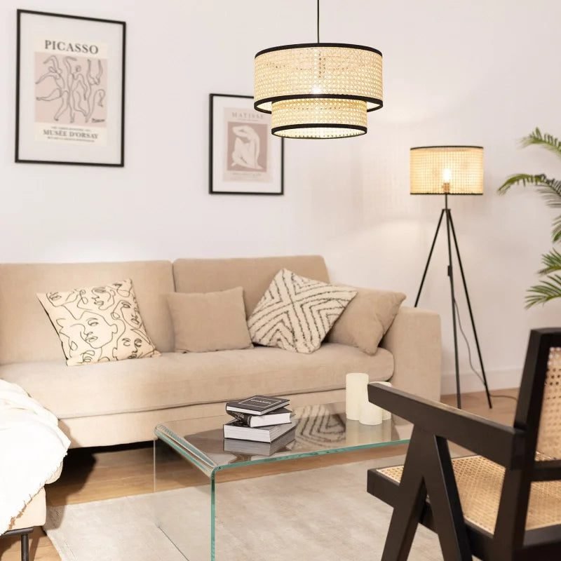 Luminy — Abat-jour cannage noir, jeu d’ombres et d’élégance