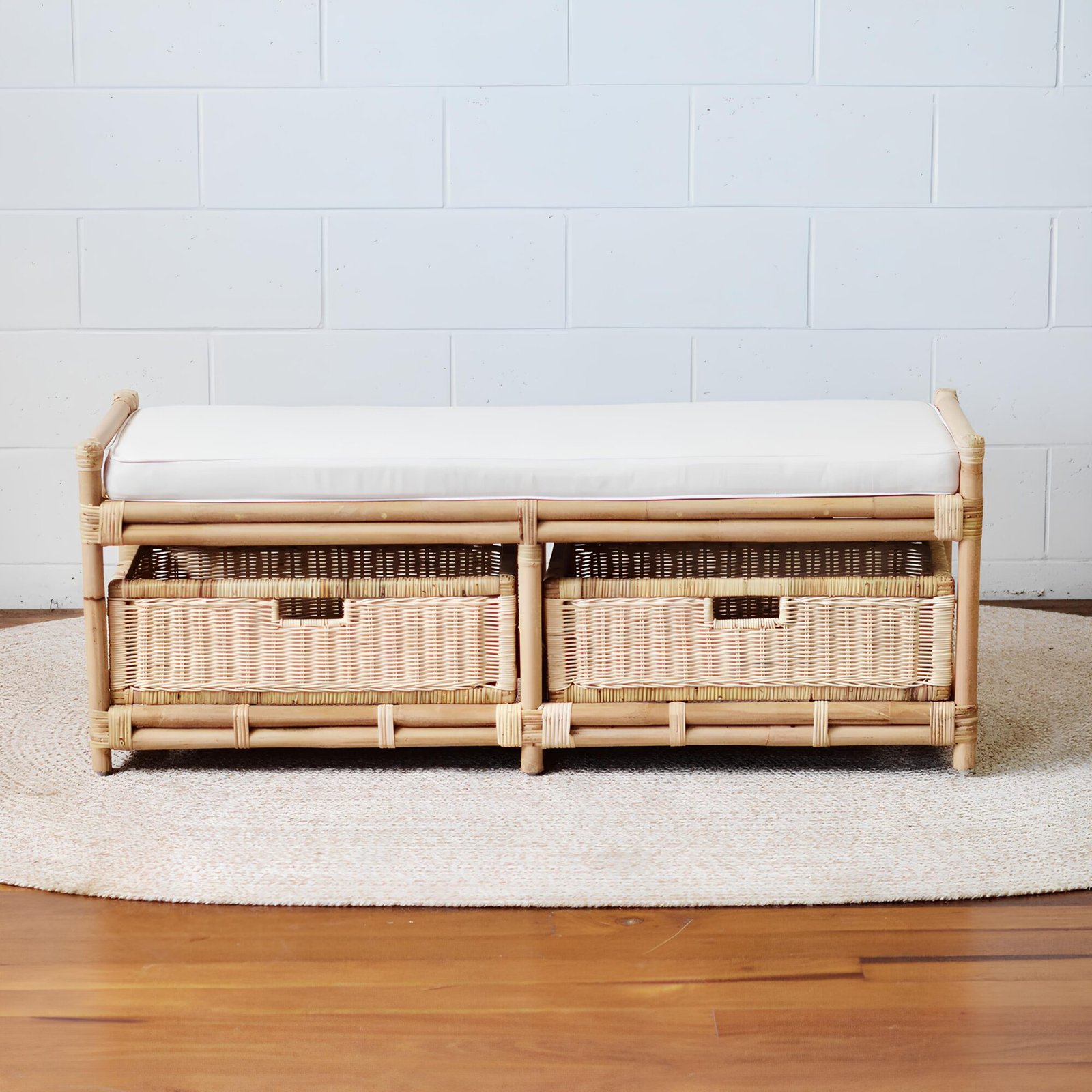 Banc en rotin et bois de manguier — Élégance artisanale pour votre intérieur