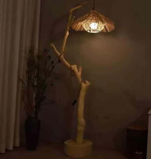Lampadaire en rotin — Éclairage chaleureux et charme naturel