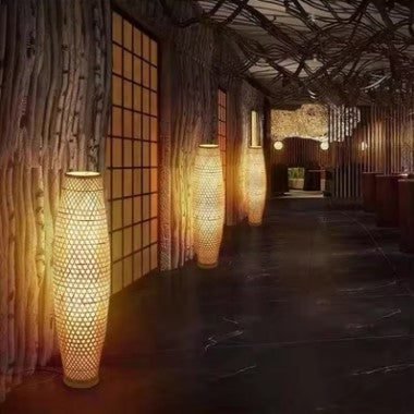 Lampadaire en rotin au dessin élancé — lumière douce et esthétique naturelle