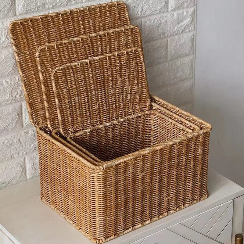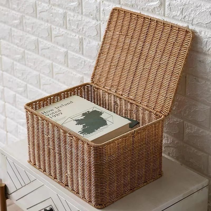 Malle de rangement rectangulaire en rotin — élégance pratique pour tous vos espaces