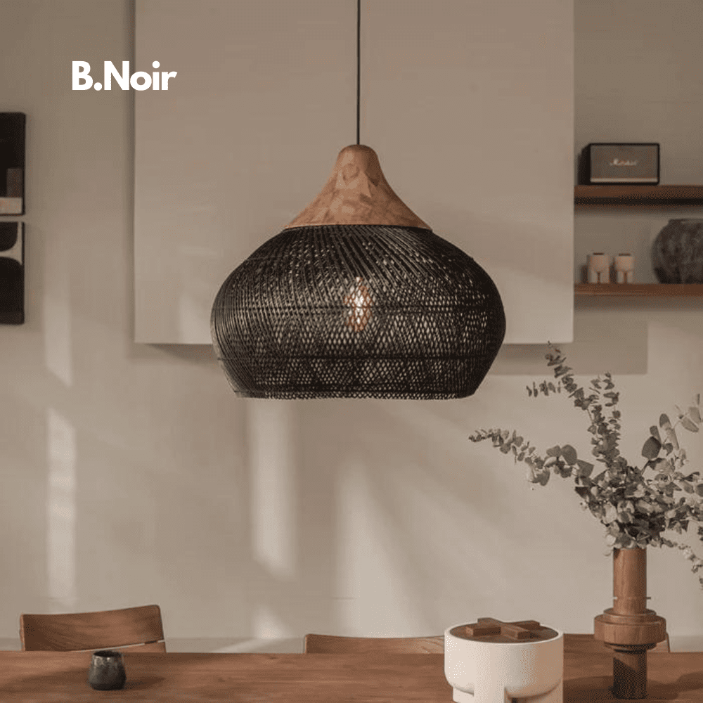 Élevez Votre Espace avec la Suspension Rotin & Bois KAIA – B – Noir