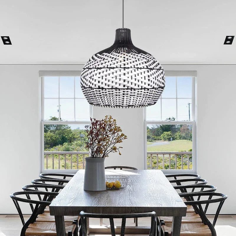 Suspension Rotin Noir & Blanc | KONA : L’Élégance au Naturel